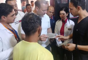 وناظر سيادته بعض المرضى وتابع بعض الحالات مع أطباء الإستقبال ، وتحدث سيادته مع بعض المرضى واطمأن على سلامتهم ، كما استطلع رأيهم فى الخدمة المقدمة لهم .